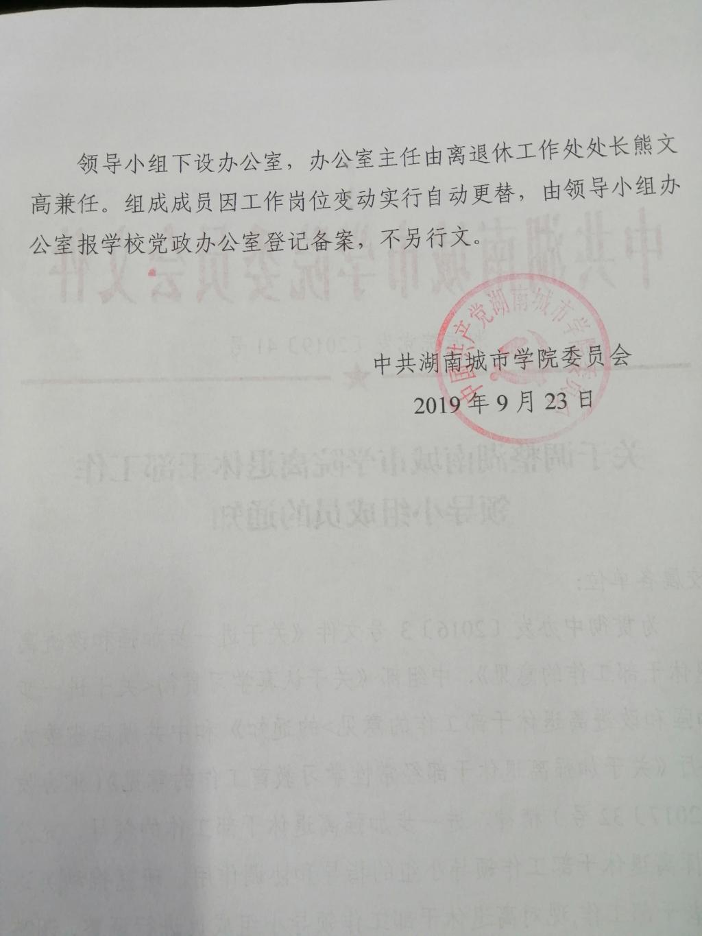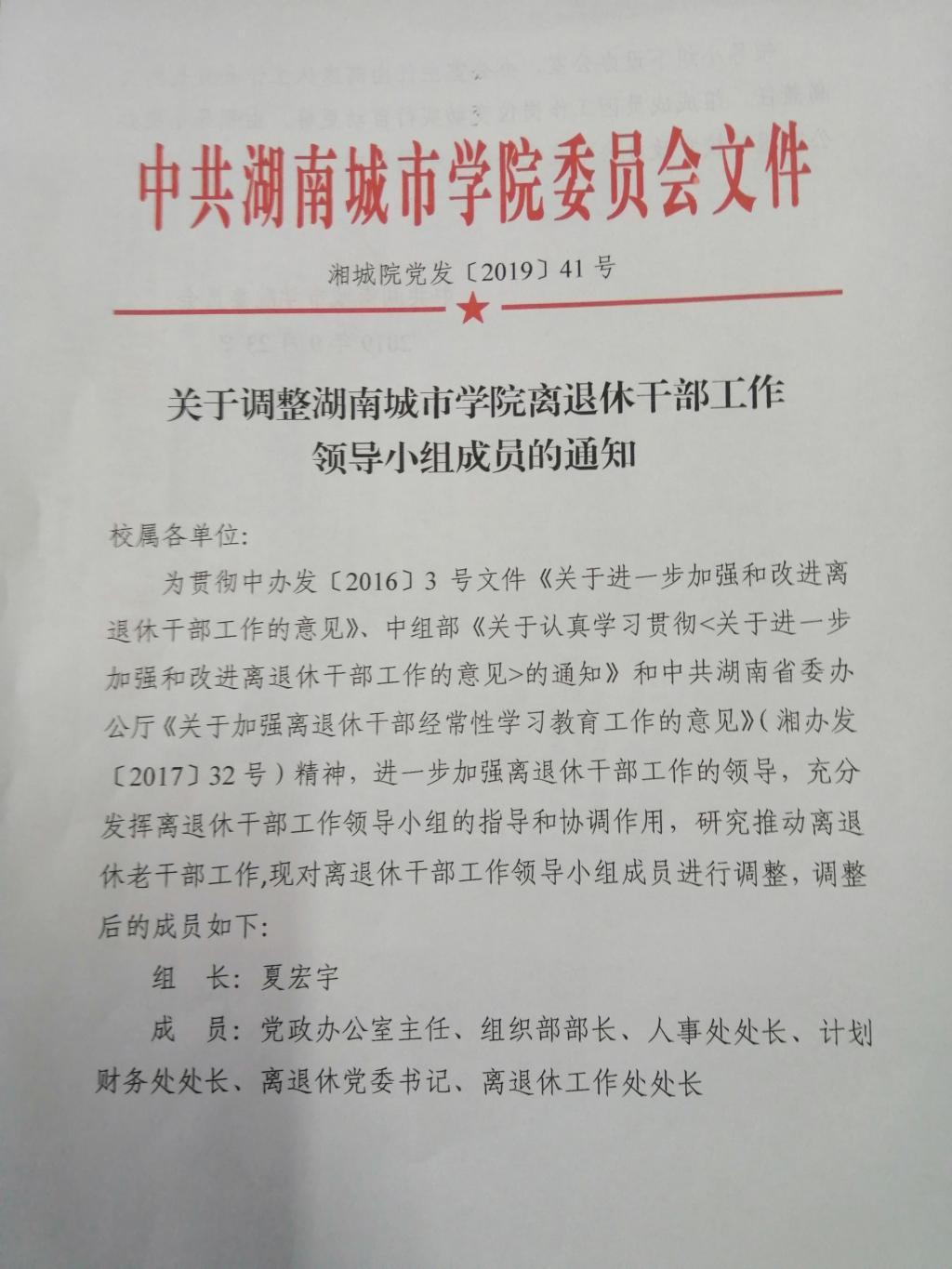 中共76net必赢官网委员会文件:关于调整76net必赢官网离退休干部工作领导小组成员的通知