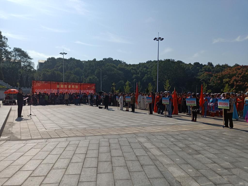 10月12日,益阳市2018“银龄行动”暨“老科技工作者日”活动在烈士纪念广场举行。市委组织部副部长、老干部局局长皮本泰、中国老科协理事、市老科协会长陈恒祥出席,全市各单位老科协代表共300多人参加。我校30名老科技工作者在离退休处处长熊文高、会长肖玉衡带领下参加了本次活动。
