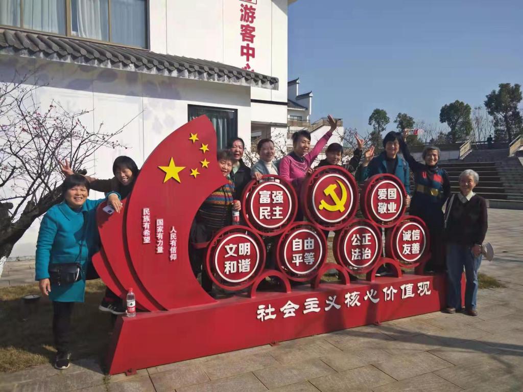 在一路欢声笑语中,乘车来到湖南省美丽乡村示范村——益阳市紫薇村。在温暖的阳光下,在春意盎然的紫薇园里,在秀美淳朴的田园风光中尽情体味春的气息,老同志们三五结伴,相互问候,追忆退休前的美好时光,闲谈现在的幸福生活,时而拿出手机拍照,定格相聚的宝贵时光。在欢声笑语中流露出老同志对新时代新生活的赞美和追求。