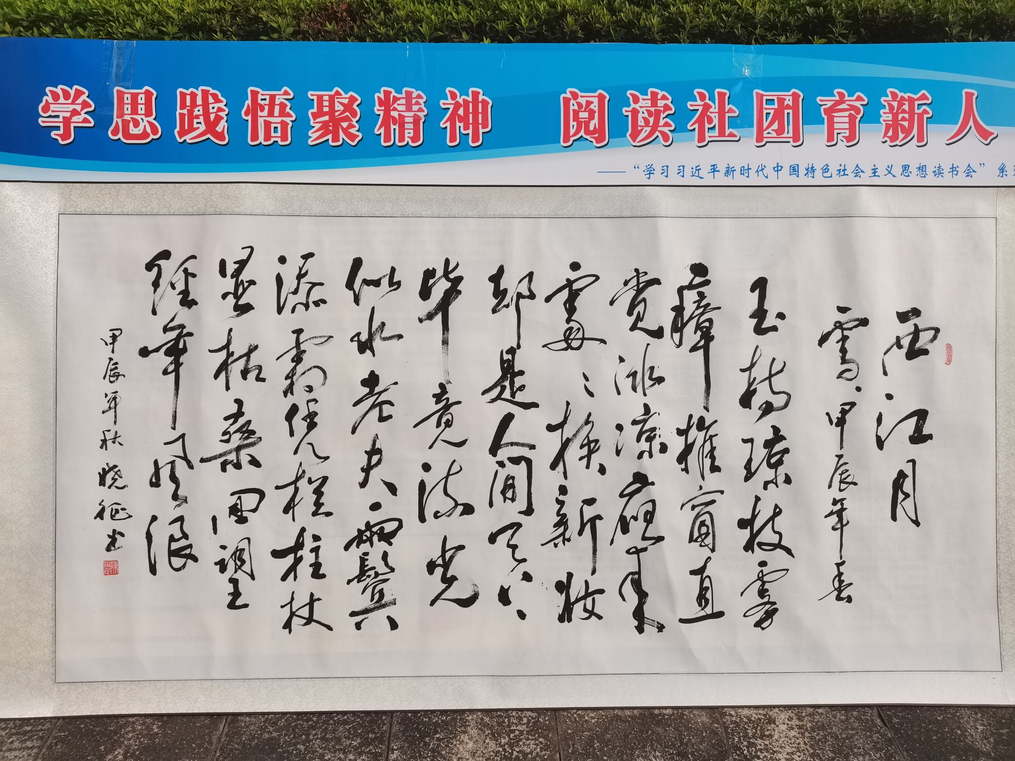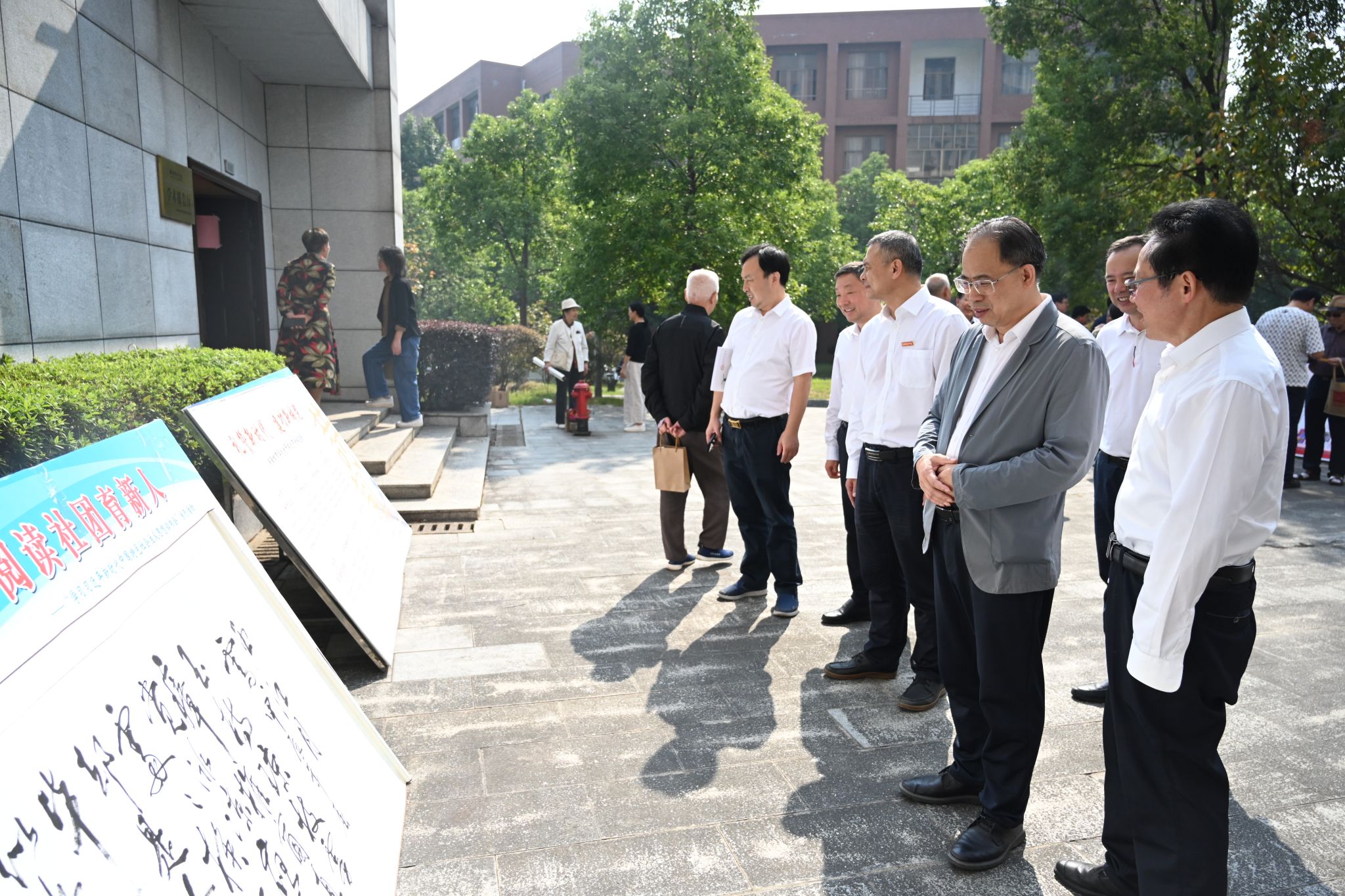 本网讯(通讯员 张艳霞)10月11日上午,出席学校2024年重阳节庆祝大会后,校长何振,副校长谭献良,党委委员、组织部部长吕贤军,宣传部部长贺正宜一行来到学校图书馆东门外,参观 “迎评估 颂城院”老干部优秀诗词书画作品展。