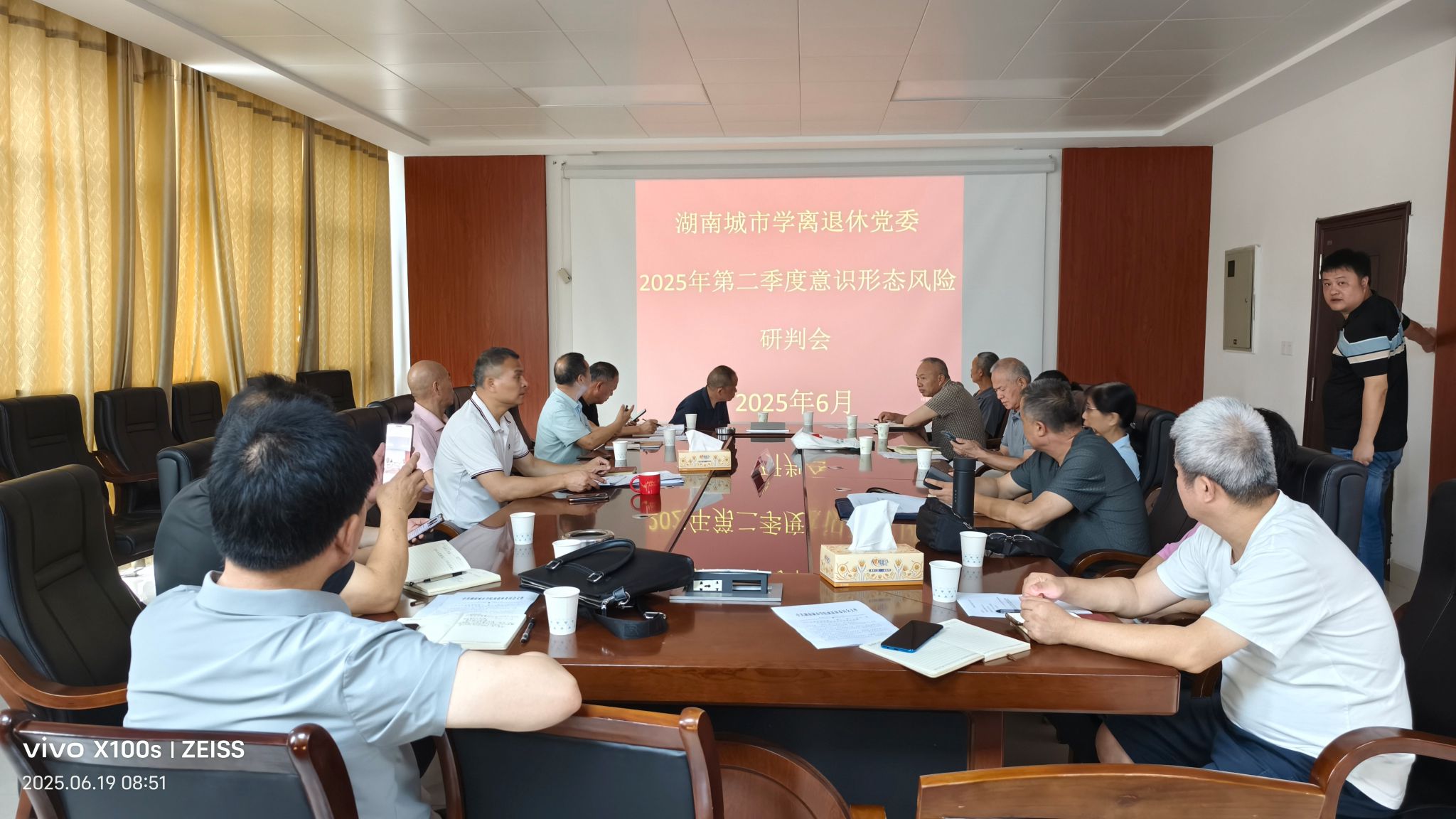 会议传达了学校《关于召开2025年第二季度意识形态风险研判会的通知》,总结了意识形态工作进展,重点围绕防宗教渗透、网络舆情、师德师风建设、阵地管理、学生安全稳定等内容进行研判和分析,并部署下阶段工作。