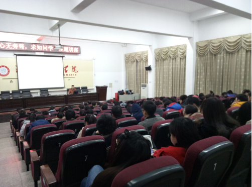 胡拥军教授以“做事先做人”开场,将人分为五种:人物,人才,人手,人员,人渣。选择哪种做人方式,就是选择了你大学四年时光的度过方式,赢得了同学们的热烈掌声。接着,结合事例有理有据地说明了大学生应该珍惜大学的四年时光,语重心长地告诉学生在做事时要努力做到心无旁骛,特别是要做到心无旁骛地去学习,引导学生要求知问学,完善自己,为自己想要的生活而奋斗。“假如高考是人生的第一个转折点,那么大学四年就是人生的第二个转折点。”,胡院长希望我们具备吃苦耐劳的品质和独立思想,把握好大学时光。