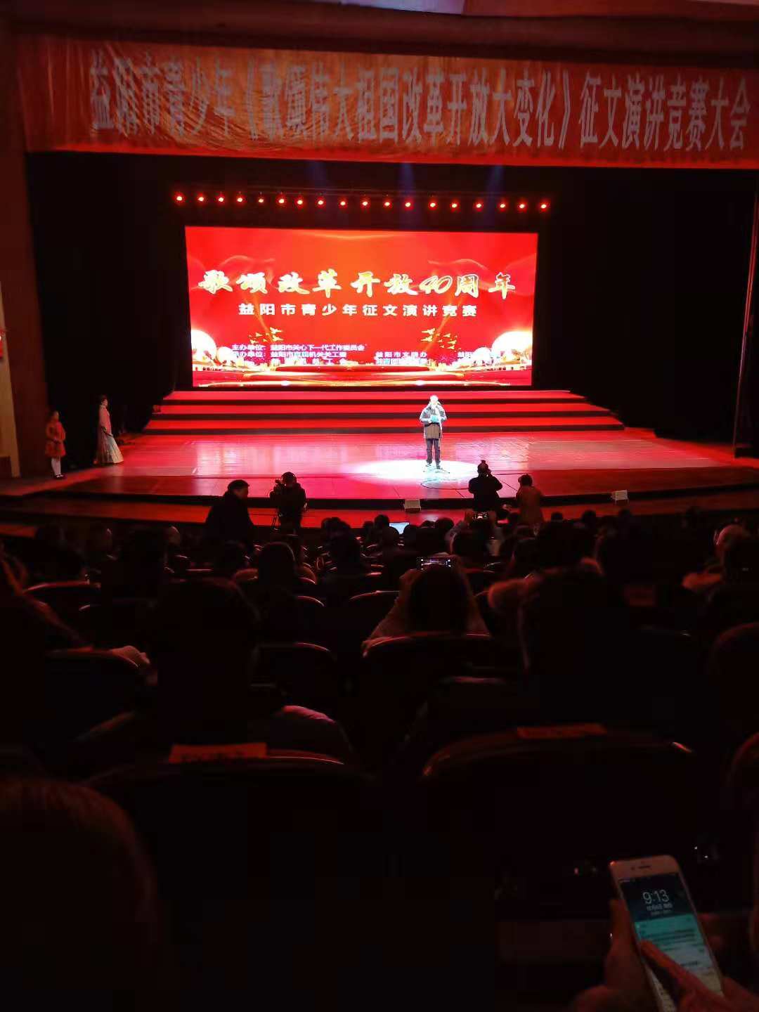 为讴歌中国改革开放40周年伟大成就,展现青少年爱党爱国的真挚情怀,12月6日,由益阳市关工委主办,益阳市直属机关关工委、益阳市文明办等单位联合承办的益阳市青少年“歌颂伟大祖国改革开放大变化”演讲比赛在益阳大剧院隆重举行。益阳市关工委主任陆国柱、执行主任陈恒祥、副主任袁国军、皮本泰等出席,市直各单位关工委领导、“五老”及1000余中小学生观看了比赛。我校离退休处处长、关工委副主任熊文高、秘书长刘登云、二级学院关工委常务副主任代表王锡华、项望楚、肖玉衡、杨丽君参加了本次活动。