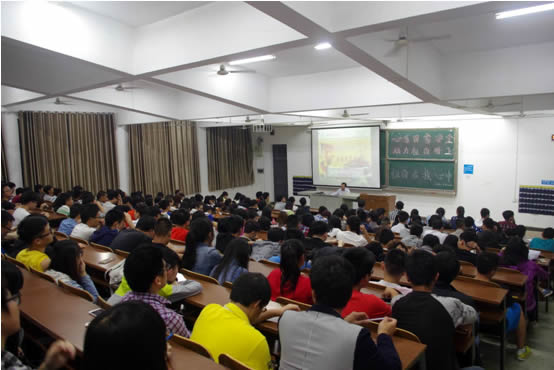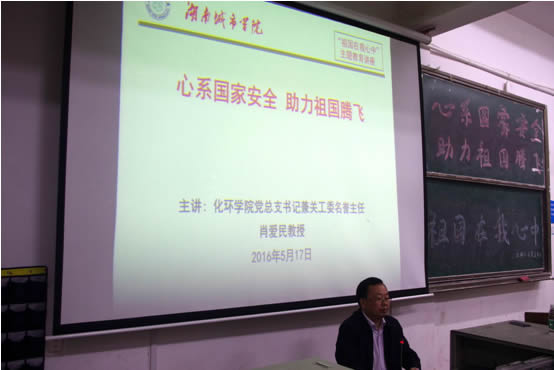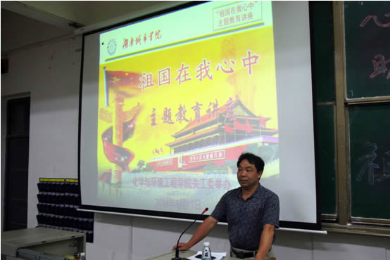 2016年5月17日晚,校本部一教308教室座无虚席,化学与环境工程学院关工委在此如期组织举办“祖国在我心中”主题教育讲座。学院党总支书记兼关工委名誉主任肖爱民教授担任本次讲座主讲人。学院部分教师及学生共200余人参加讲座。学院党总支副书记兼关工委主任钟桐生教授主持。