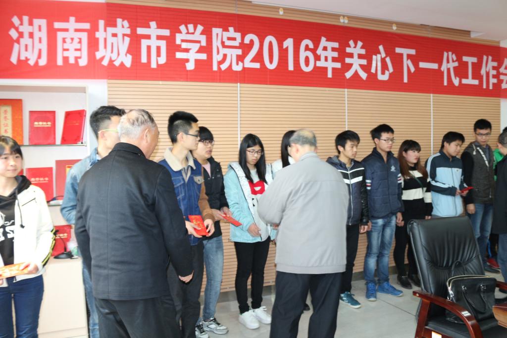 资助仪式由离退休处处长、关工委副主任熊文高同志主持;学校关工委顾问李建华书记、关工委主任郑卫民副校长、关工委副主任刘登科同志、关工委秘书长刘登云同志以及学校保险经理室经理孙清武同志为特困学生颁发了资助资金。